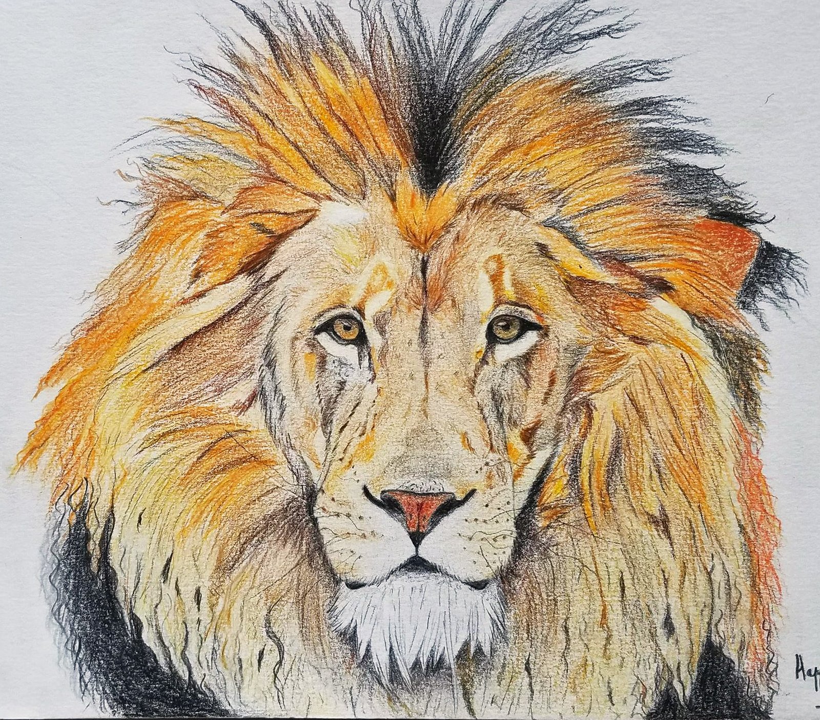 J’ai trouvé la prise en main vraiment facile, mes dessins réalisés avec ces crayons sont ceux que j’ai fait le plus vite je pense (sauf le chat), sans aucune hésitation, comme le lion ci-dessous que j’ai fait en weekend en me disant « que j’allais tester mes crayons une seconde fois » (la bonne blague ! je crois que c’est un de mes dessins préférés).